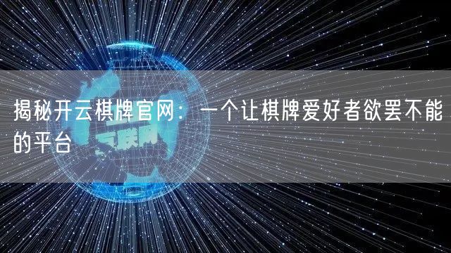 总之,开云棋牌官网是一个让棋牌爱好者欲罢不能的平台。它提供了丰富的棋牌游戏、优化用户体验、公平的竞技环境、丰富的福利活动以及完善的社交功能,满足了棋牌爱好者的需求。如果你是一个热爱棋牌的人,那么开云棋牌官网将是你的不二之选。