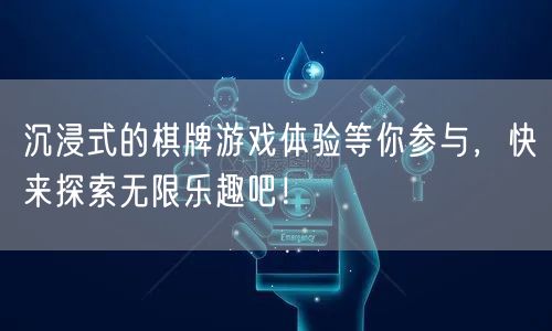欢迎来到沉浸式的棋牌游戏世界,这里有无尽的棋牌乐趣等你来探索!在这里,你可以感受到最真实的棋牌游戏体验,身临其境地投入到这个充满挑战和机遇的棋牌世界中。