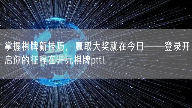 掌握棋牌新技巧,赢取大奖就在今日——登录开启你的征程在开元棋牌ptt!对于喜爱棋牌的你来说,这无疑是一个激动人心的消息。在这里,你将有机会挑战自我,学习新的棋牌技巧,赢取丰厚大奖!